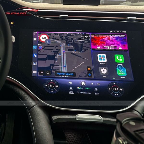 Khi trang bị Android Box cho Mercedes-Benz EQE 500 2025, người dùng sẽ được trải nghiệm các ứng dụng dẫn đường thông minh, bao gồm Google Maps, Vietmap, Navitel. Các thông tin chỉ dẫn cụ thể, kết hợp với cảnh báo giao thông, giúp quá trình di chuyển trở nên an toàn và thuận tiện hơn.