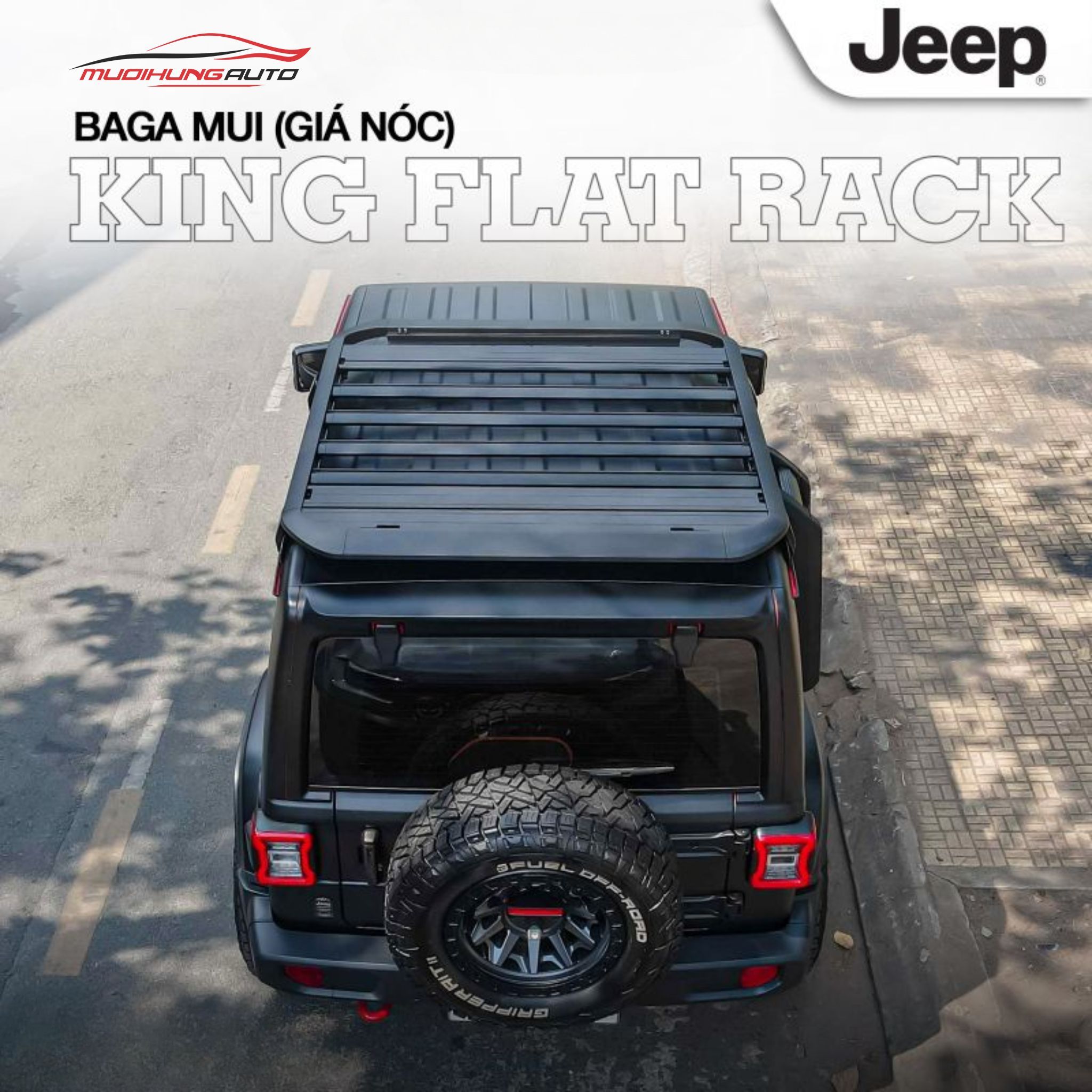 Mười Hùng Auto - Địa chỉ lắp đặt baga mui Nhôm King Flat Rack xe Jeep Wrangler & Gladiator (có thang lên xuống) uy tín