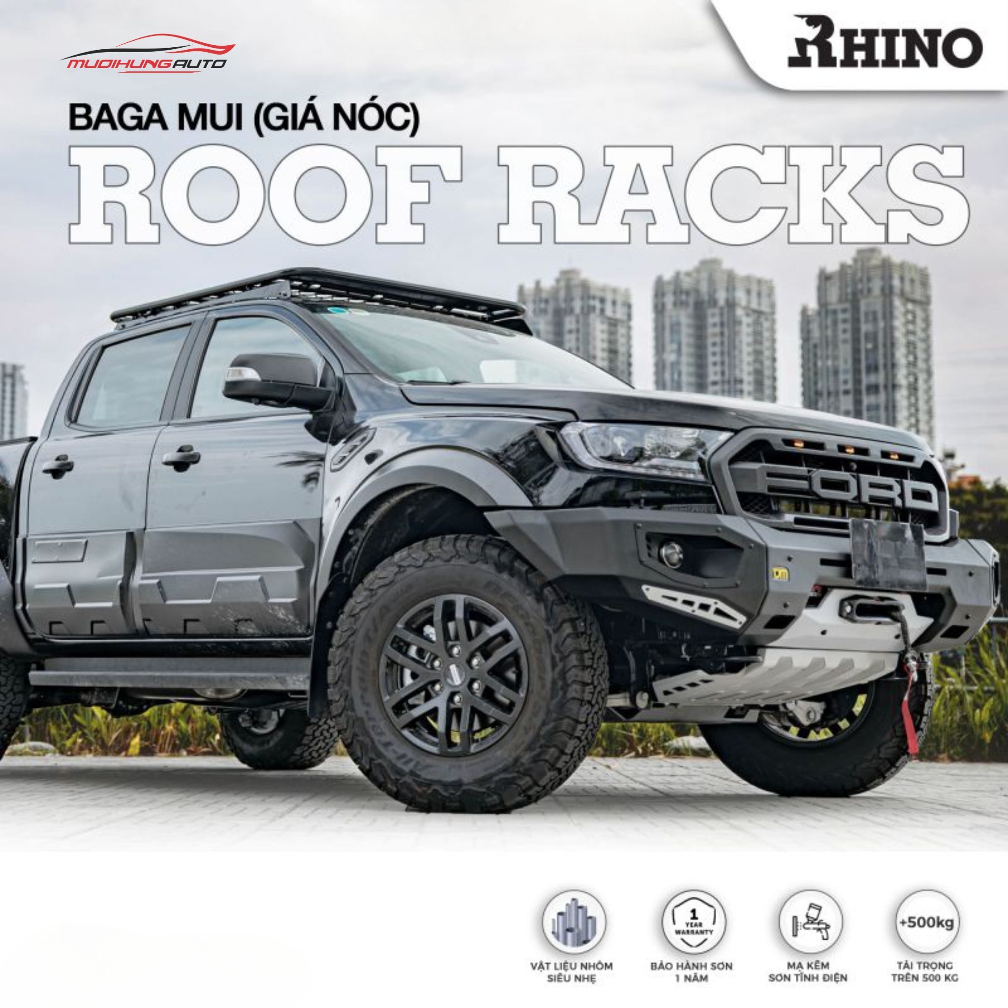 Giá baga mui nhôm Rhino cho xe bán tải tại Mười Hùng Auto là...