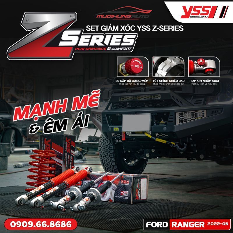 Liên hệ Mười Hùng Auto qua Hotline/Zalo 0909.66.8686 để đặt lịch độ giảm xóc ô tô YSS Z-SERIES Ranger Next - Gen 2022 - ON sớm nhất.