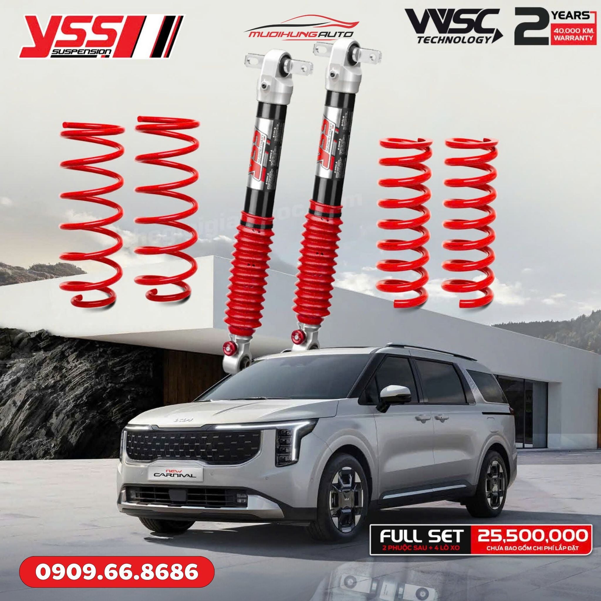 Liên hệ Mười Hùng Auto qua Hotline/Zalo 0909.66.8686 để được tư vấn thêm thông tin chi tiết về chính sách bảo hành khi độ phuộc xe hơi YSS Z-SERIES Carnival NEW 2025.