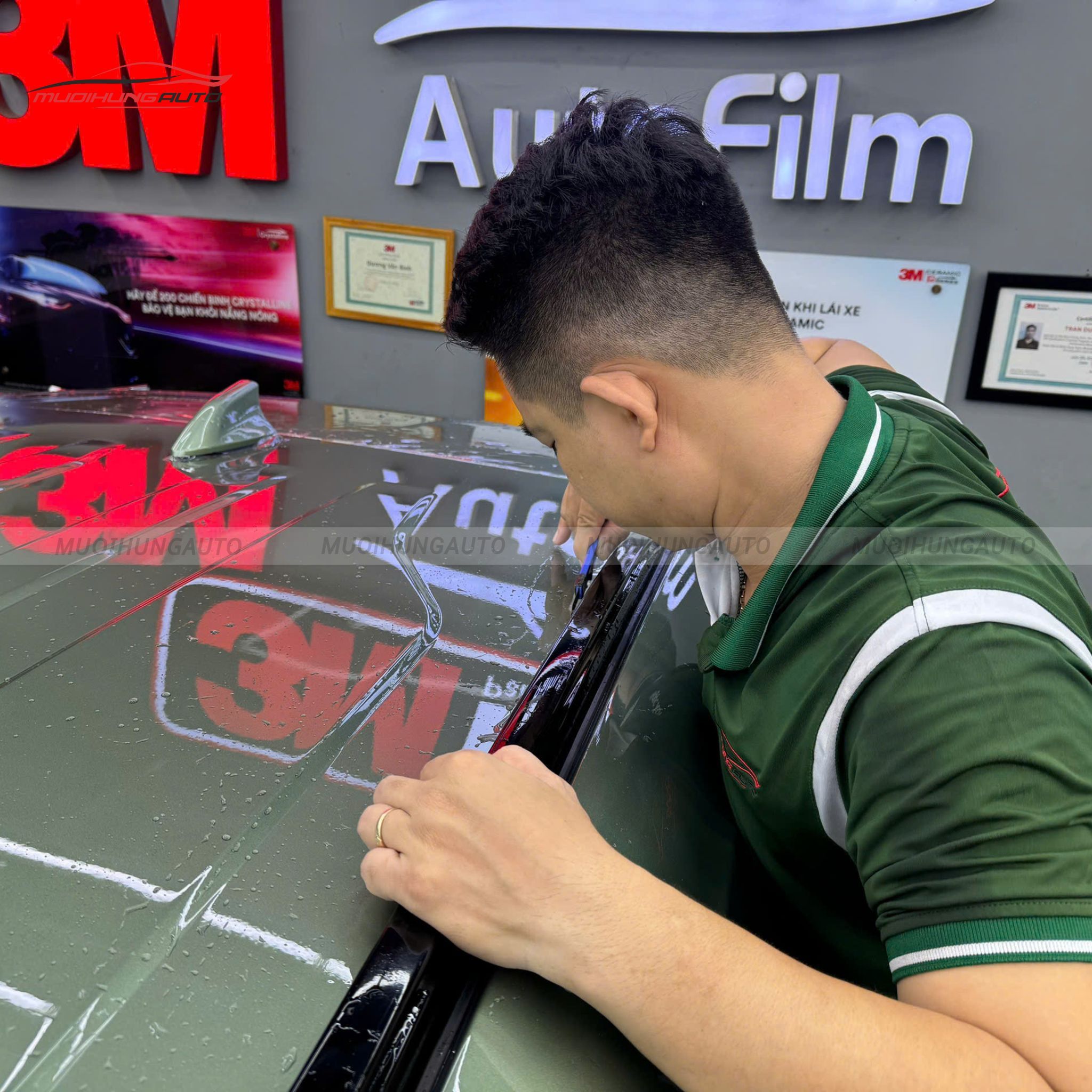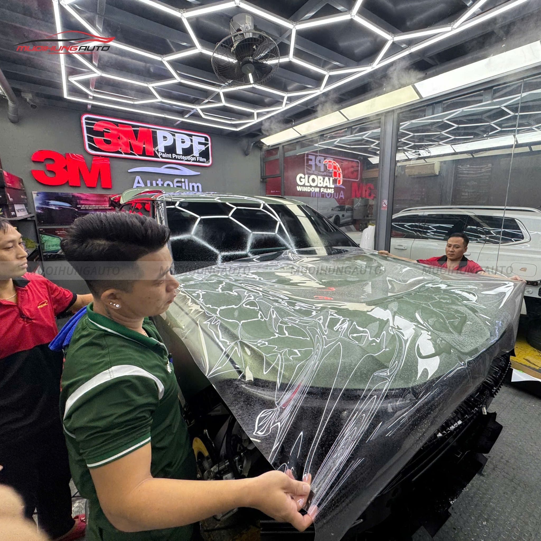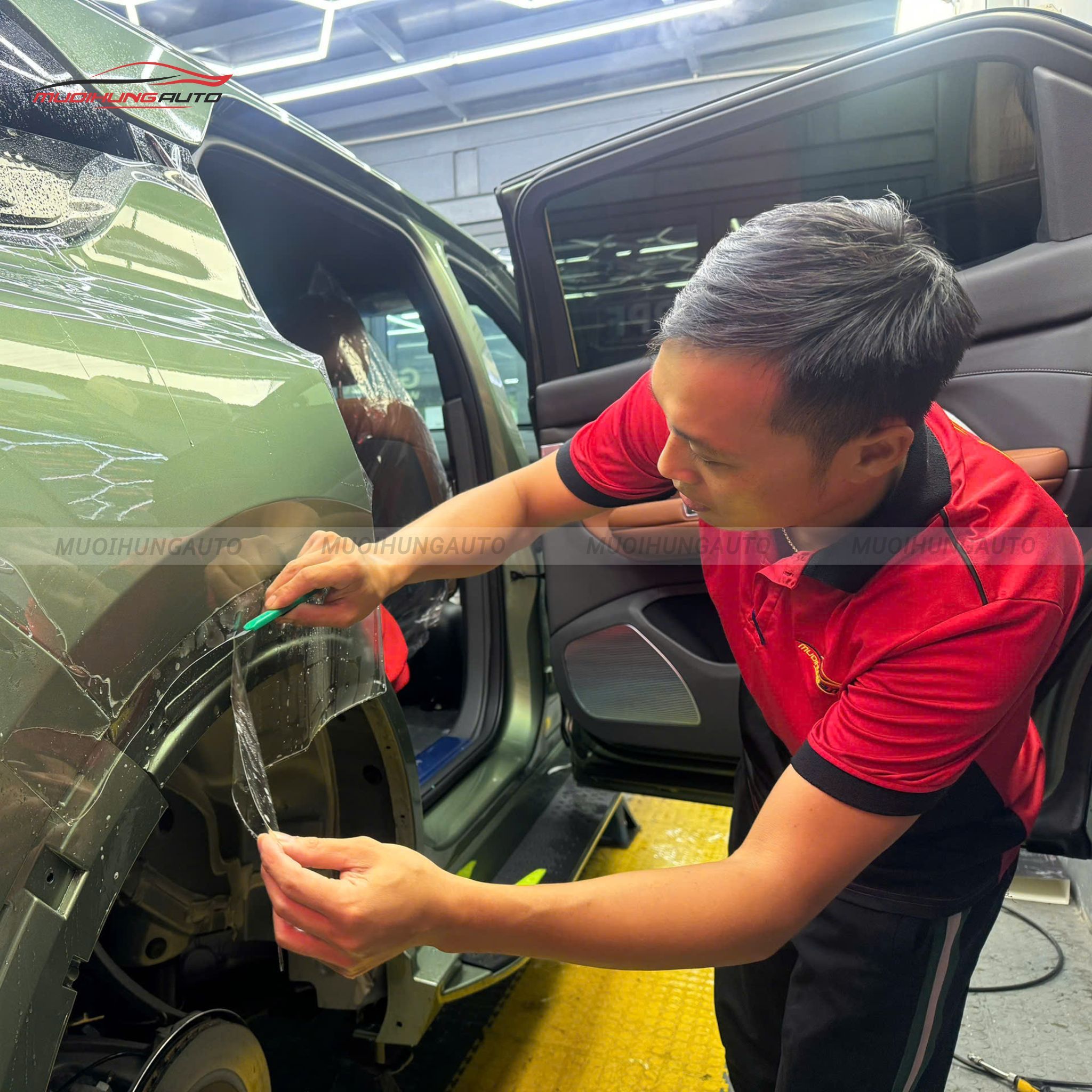 Bên cạnh đó, Mười Hùng Auto còn đầu tư trang bị hệ thống phòng dán phim đạt chuẩn, đáp ứng các tiêu chuẩn khắt khe. Cùng với đó là đội ngũ kỹ thuật viên giàu kinh nghiệm, có tay nghề cao, đảm bảo quy trình thi công an toàn và chính xác.