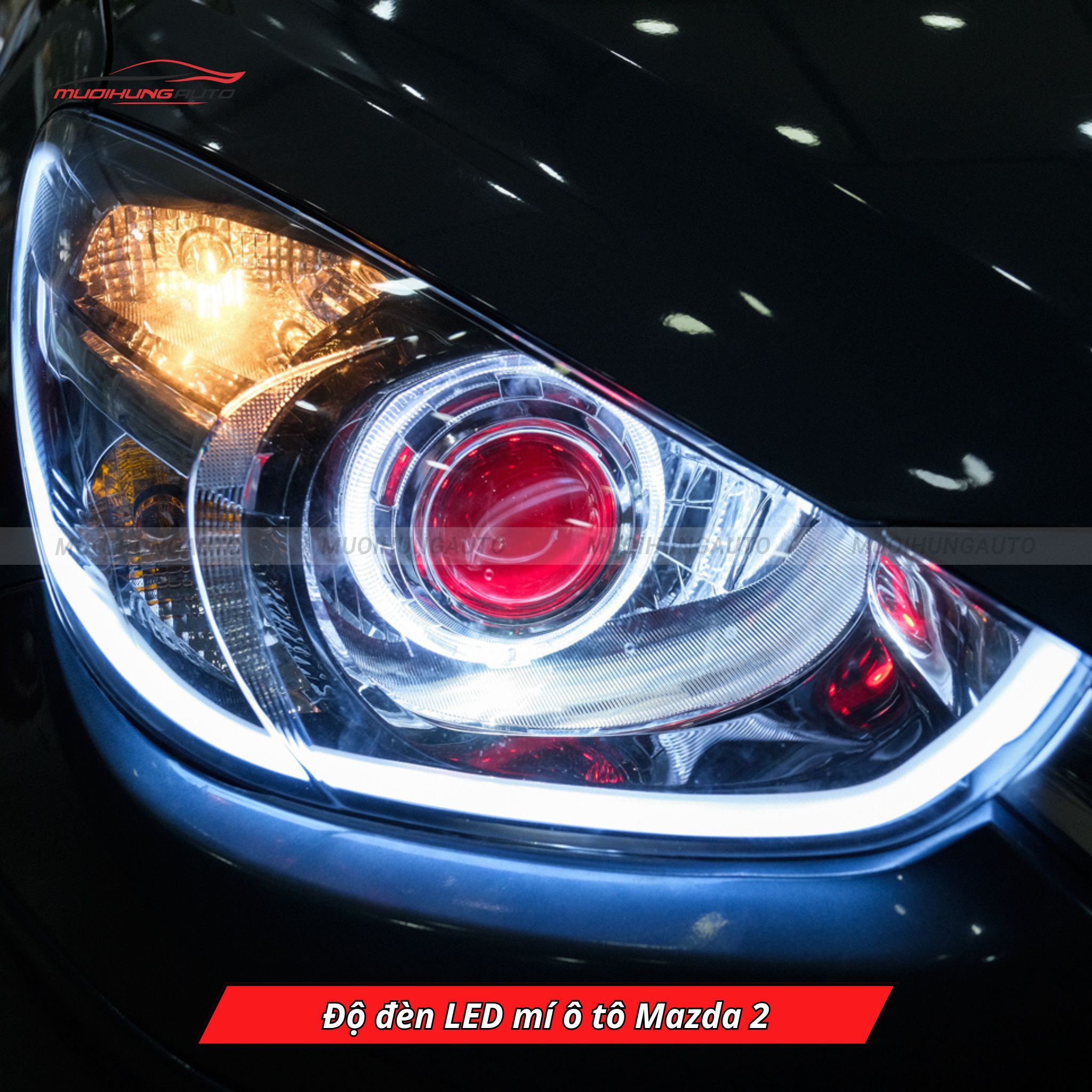 Mười Hùng Auto - Địa chỉ độ đèn LED mí ô tô Mazda 2 uy tín