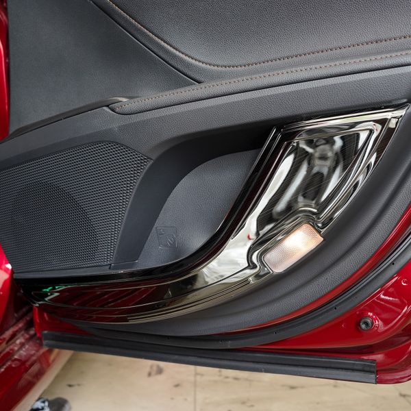 - Thiết kế dạng vân giả gỗ sang trọng được lắp đặt tại các vị trí cánh cửa, giúp mang lại tính đồng bộ cao và nét đẹp quyến rũ, đẳng cấp cho không gian xế hộp