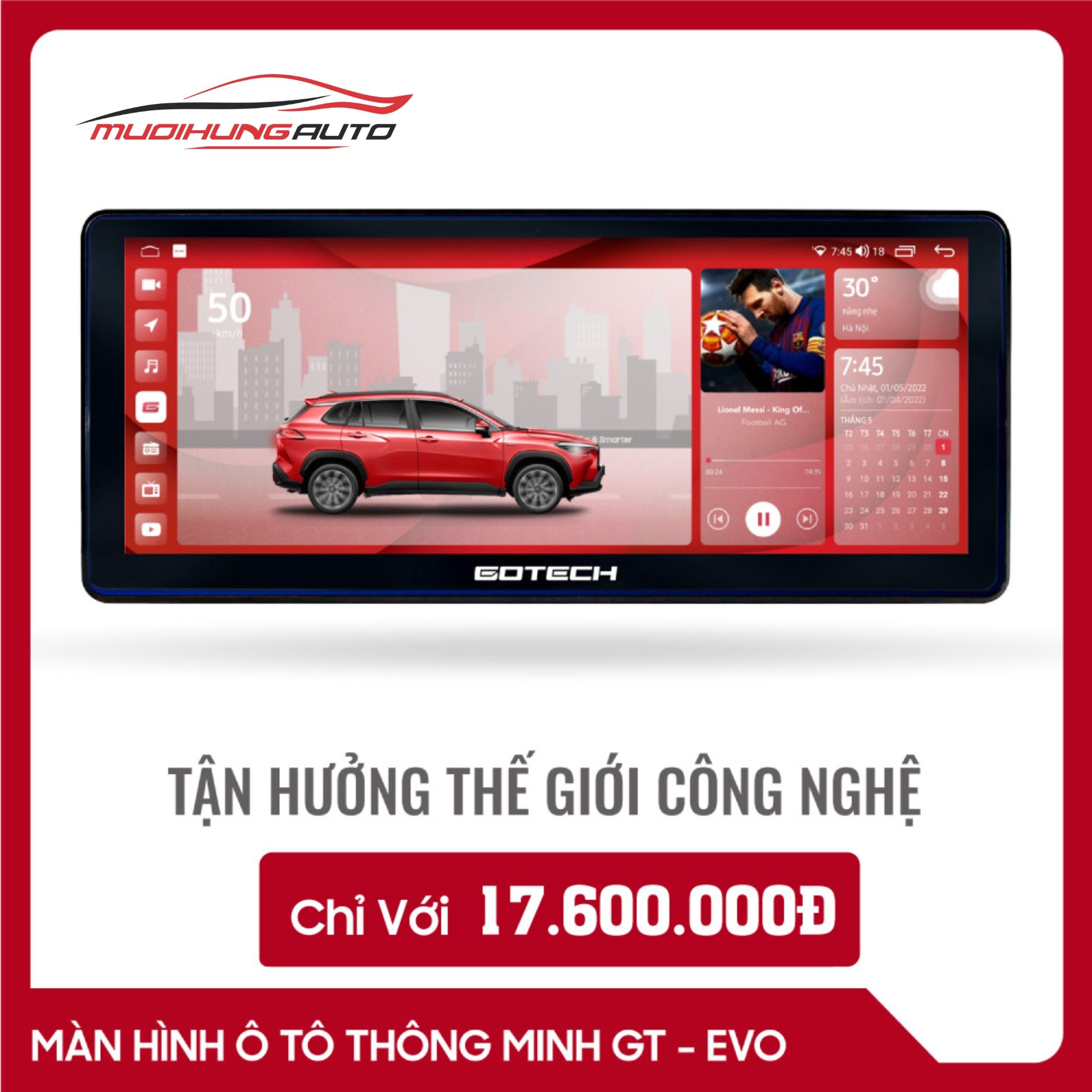 Gotech GT Evo được thiết kế dành riêng cho 4 mẫu xe tầm trung trên thị trường gồm Kia Cerato, Toyota Corolla Cross, Hyundai Santafe và Hyundai Tucson. Màn hình GT Evo mang đến nhiều tính năng tiên tiến, xứng đáng là một trong những dòng màn hình đáng sở hữu nhất hiện nay.