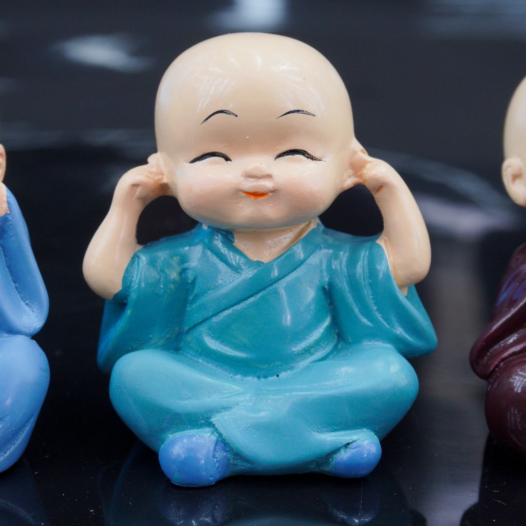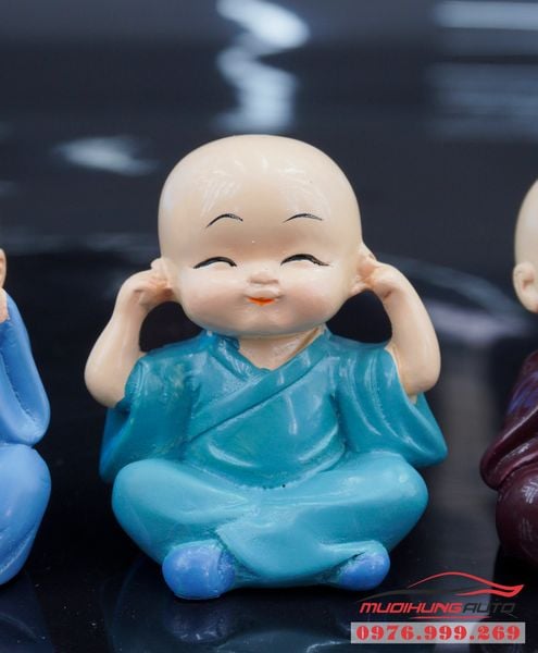 Bộ tượng 4 chú tiểu nhỏ xinh thích hợp trang trí xe hơi, hình dáng tượng tinh xảo, đẹp mắt và có ý nghĩa cầu bình an may mắn, tượng trưng cho sự thanh thản và an lạc